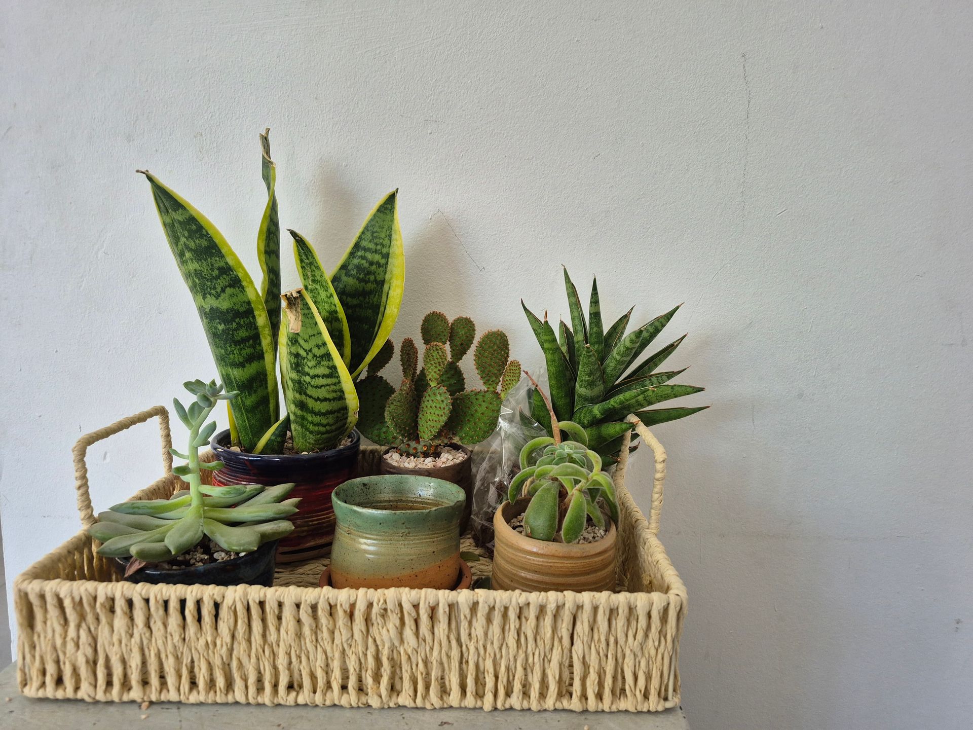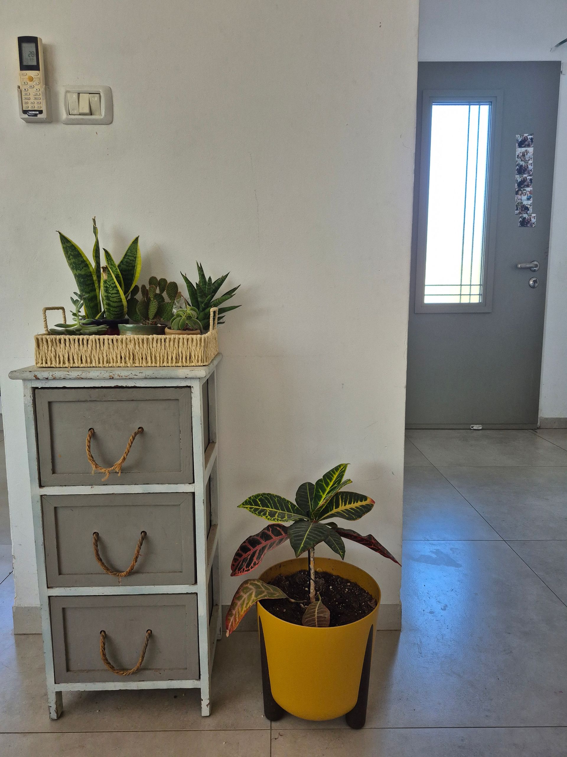 כשאספתי מספיק עציצים כאלו, ריכזתי אותם למקום אחד: על המגירות בכניסה לבית.