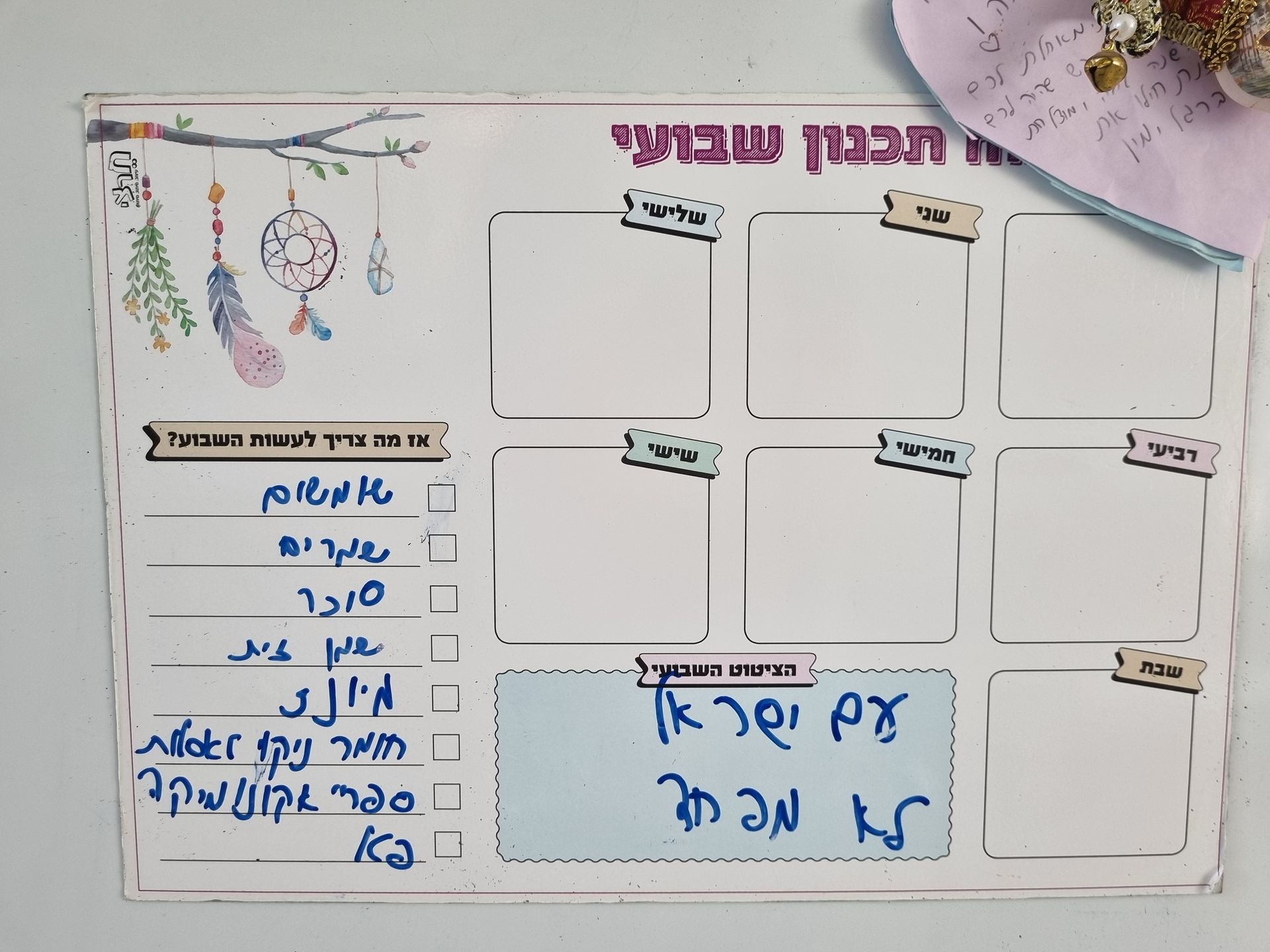 אנחנו כותבים בו בכל מוצאי שבת את התוכניות לשבוע שמתקיימות בשעות המשפחתיות-אחה"צ והערב.